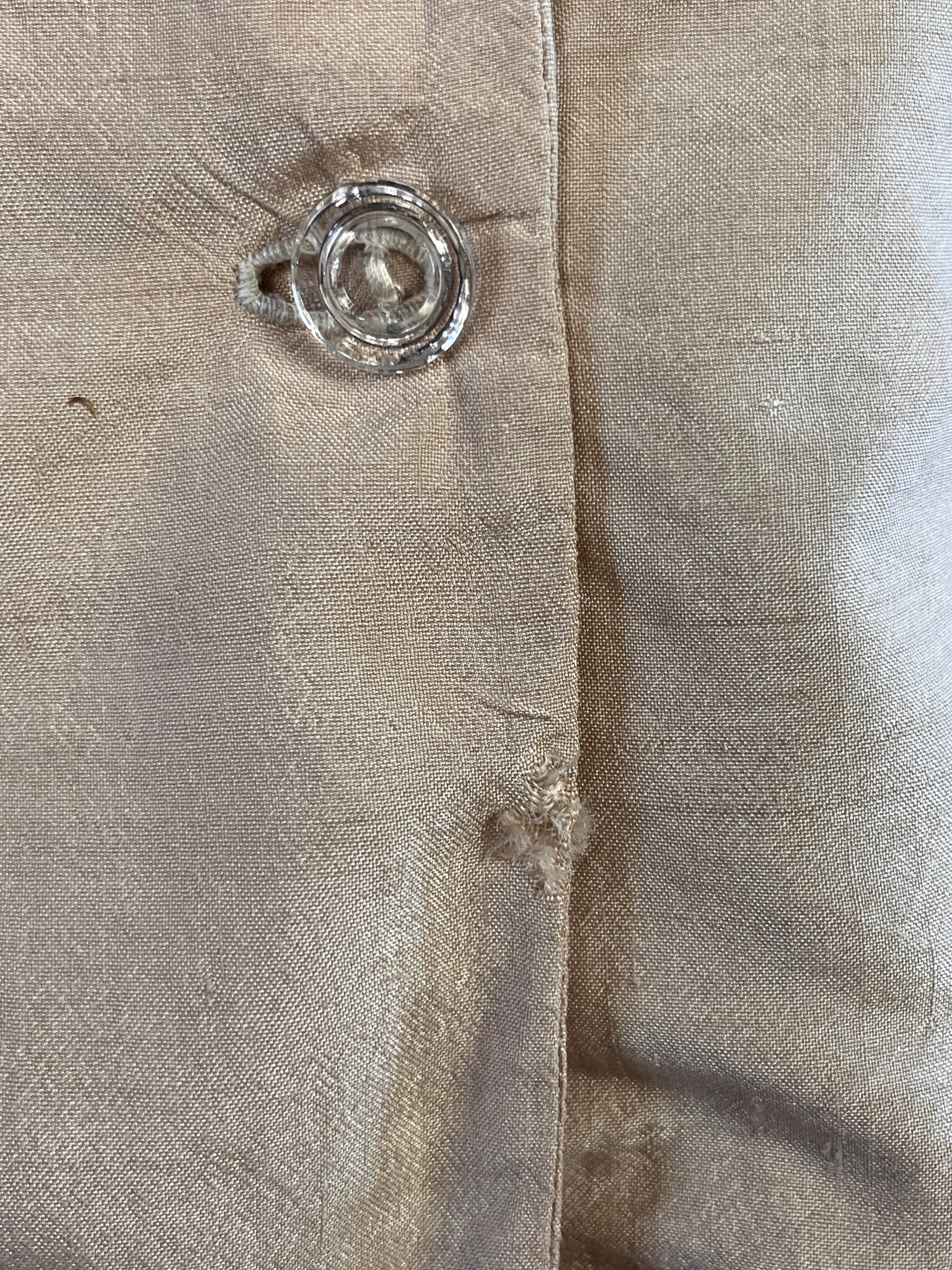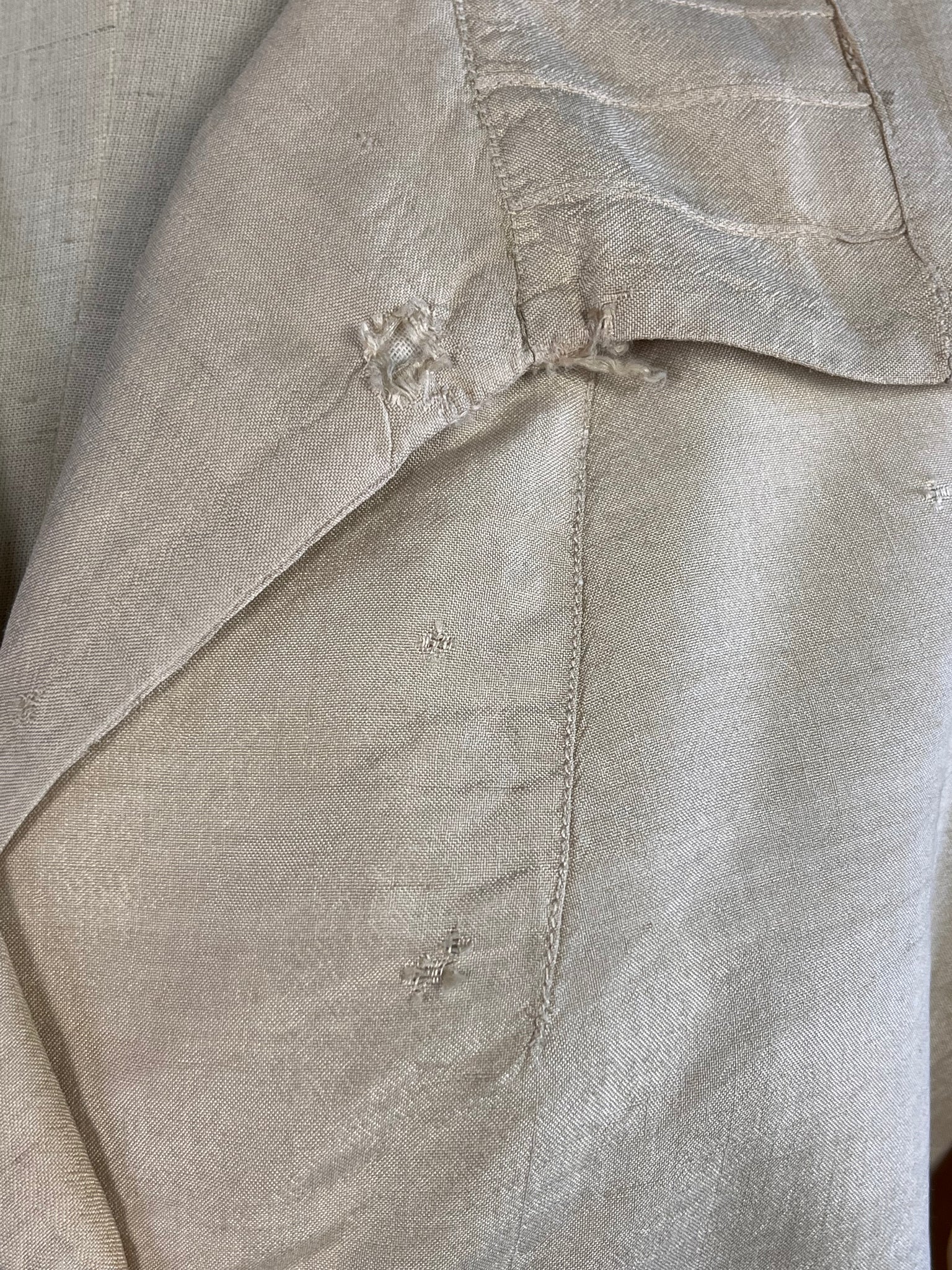 Condition: Très bon état général, à noter quelques petits accrocs et petites reprises notamment autour du col et sous le dernier bouton. Prix en conséquence .